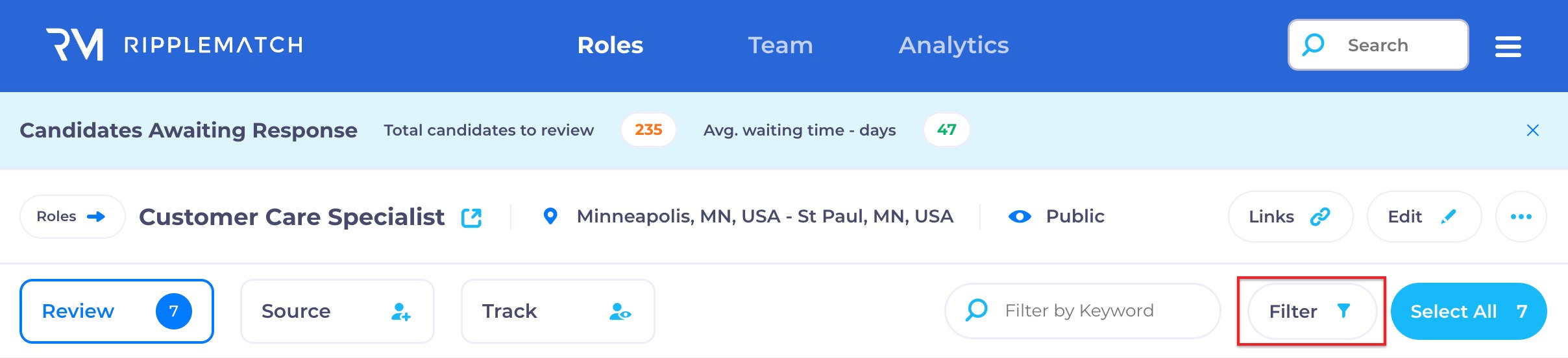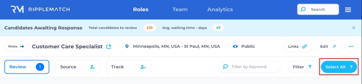 From your "Roles" portal, select the role you’d like to view candidates for and click the “Select All” button.
