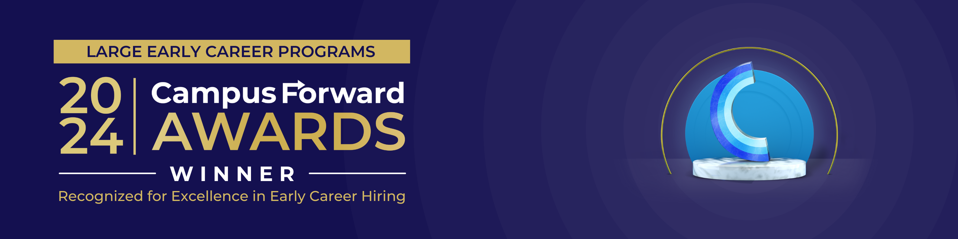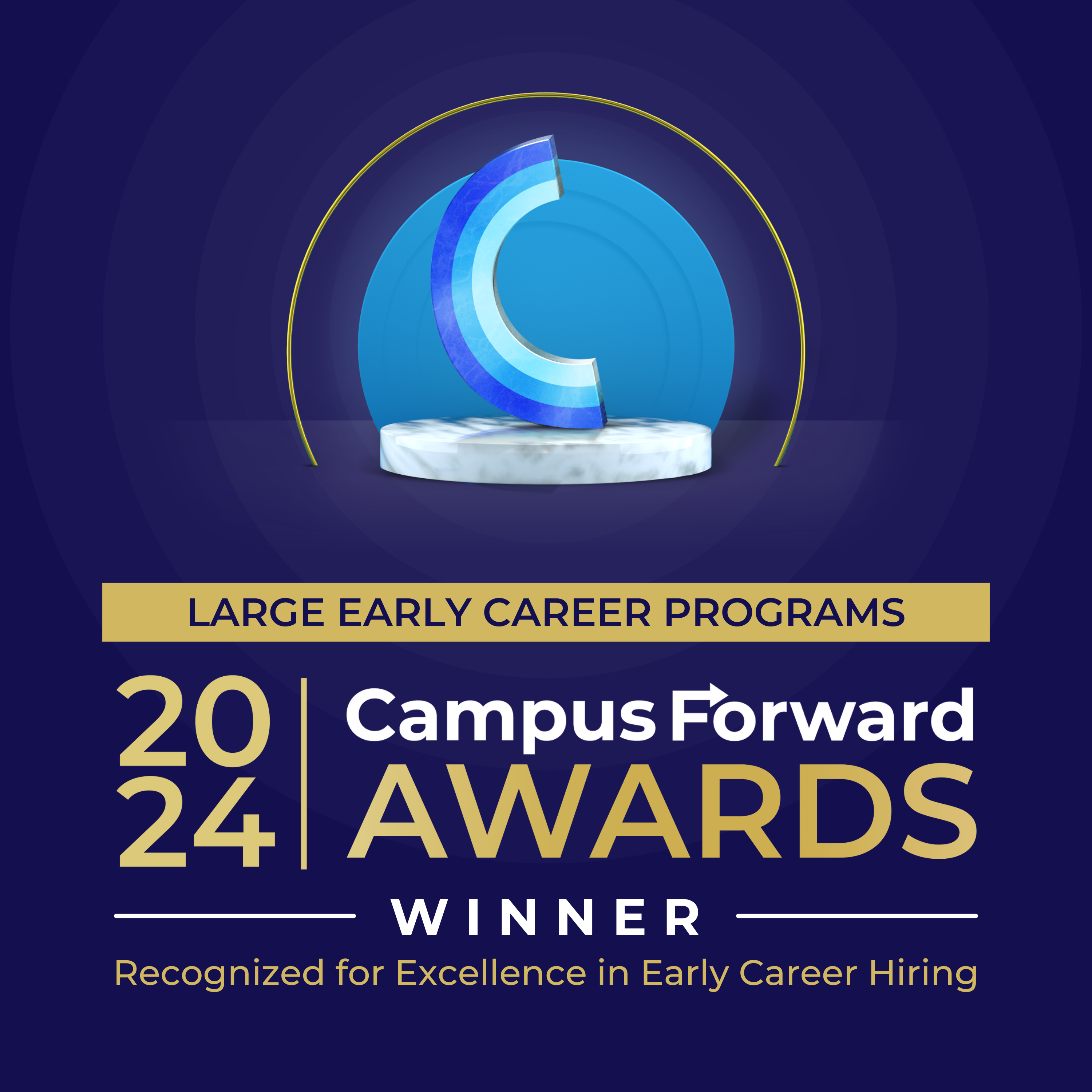 I am so excited to share that our early career hiring team at [Company name] has been named as a 2024 Campus Forward Award Winner! This Award recognizes excellence in early career hiring, celebrating the teams that embrace innovative recruiting strategies, care deeply about the candidate experience, are making significant investments in D&I, and are supporting the next generation of talent through impactful internships and entry-level programs.