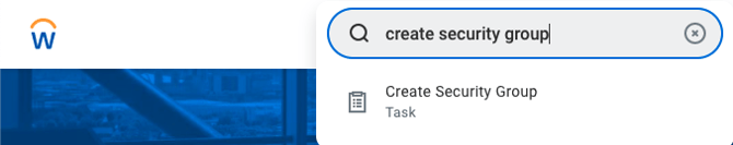 Next, use the search bar to locate the Create Security Group task and click into it.