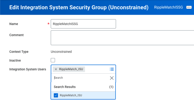 Click OK. Then, under the Integration Systems Users section, search and select the ISU Username created in Step 1-A.