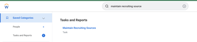 Using the search bar, locate the Maintain Recruiting Sources task and click into it.