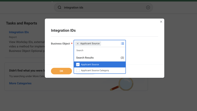 Type Applicant Source into the Business Object field. Select Applicant Source and click OK.
