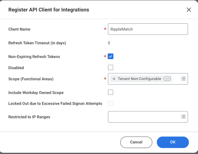 Generating REST credentials allows you to create a custom report and expose it as a web service via Workday's Report as a Service (RaaS) interface. This is necessary to enable and display both questions and answers to applications. To provision REST to access Workday custom reports, the following are required credentials: