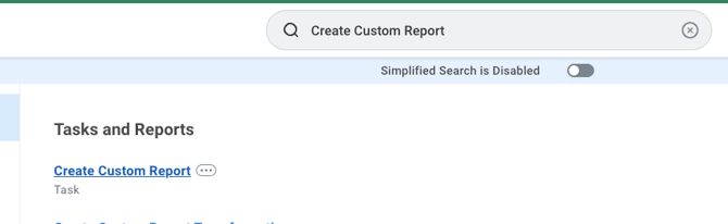 Search “Create Custom Report” and select the "Create Custom Report" task