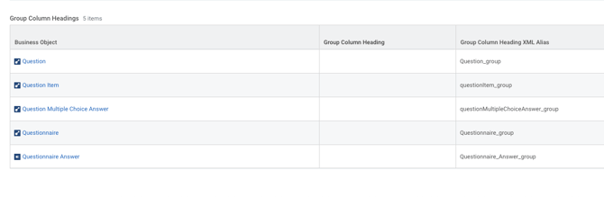 NOTE: The Group Column Heading XML Alias column does not need to be modified in the Group Column Headings table.