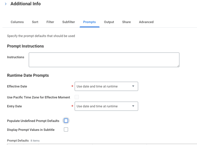 Next, select the Prompts tab and select “Populate Undefined Prompt Defaults”.